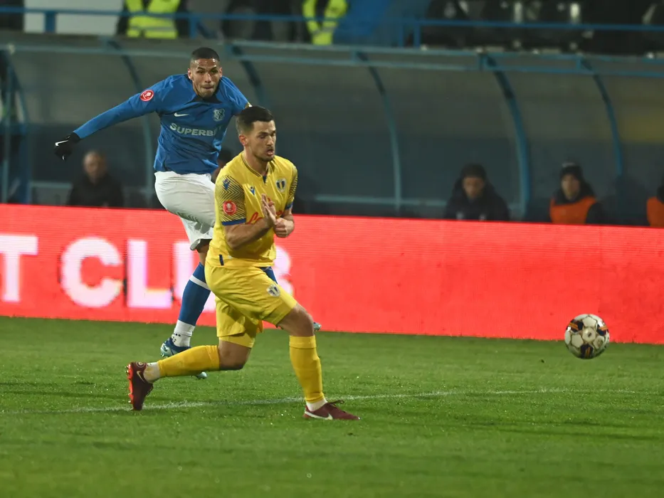 Rivaldinho (Mosca Rivaldo Vitor Ferreira) si Bart Adrianus Johannes Meijers in meciul de fotbal dintre Farul Constanta si Petrolul Ploiesti, contand pentru Superliga Superbet, desfasurat pe Stadionul central al Academiei Gheorghe Hagi din Ovidiu, duminica 10 decembrie 2023. © FOTO:Razvan Pasarica/SPORT PICTURES