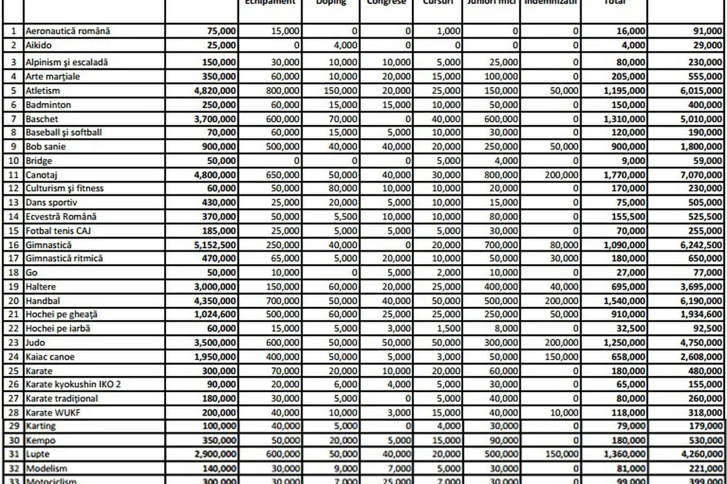 UPDATE | Gimnastica este sportul cel mai bine finanțat de MTS în 2017! Canotajul și handbalul sunt și ele pe podium. Boxul a rămas din nou pe dinafară. 60 de federații au la dispoziție 100 de milioane de lei