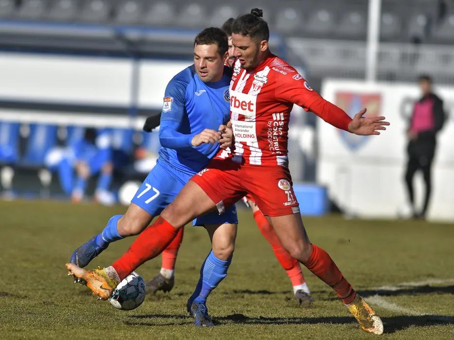 Adrian Popa si Erico Constantino Da Silva in meciul de fotbal dintre Academica Clinceni si UTA Arad, contand pentru Liga 1 Casa Pariurilor, desfasurat pe Clinceni Arena din Clinceni, joi 4 februarie 2021. © FOTO:Razvan Pasarica/SPORT PICTURES