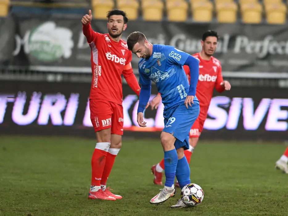 Alexandru Constantin Benga si Iliuta Daniel Popa in meciul de fotbal dintre Chindia Targoviste si UTA Arad, contand pentru Superliga Superbet, desfasurat pe Stadionul Ilie Oana din Ploiesti, vineri 3 februarie 2023. © FOTO:Razvan Pasarica/SPORT PICTURES