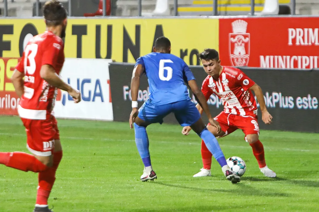 Denis Rusu (UTA si Georgi Pashov (D) in meciul de fotbal dintre UTA Arad si Academica Clinceni, contand pentru etapa a 6-a din Liga 1 Casa Pariurilor, desfasurat pe Arena Francisc Neuman din Arad, luni, 05 octombrie 2020. © FOTO:Ciprian Petcut/SPORT PICTURES