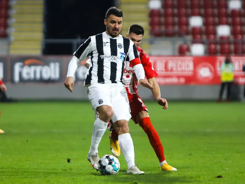 Constantin Budescu, de la Astra, si Valetin Buhacianu, de la UTA, la un duel la minge in meciul de fotbal dintre UTA Arad si Astra Giurgiu, contand pentru etapa a 15-a din Liga 1 Casa Pariurilor, desfasurat pe Arena Francisc Neuman din Arad, luni, 21 decembrie 2020. © FOTO:Ciprian Petcut/SPORT PICTURES