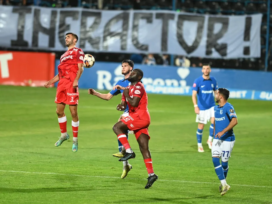 Diogo Miguel Costa Rodrigues, Tudor Cristian Baluta, Kevin Luckassen si Enes Sali in meciul de fotbal dintre Farul Constanta si UTA Arad, contand pentru Superliga Superbet, desfasurat pe Stadionul central al Academiei Gheorghe Hagi din Ovidiu, joi 26 octombrie 2023. © FOTO:Razvan Pasarica/SPORT PICTURES