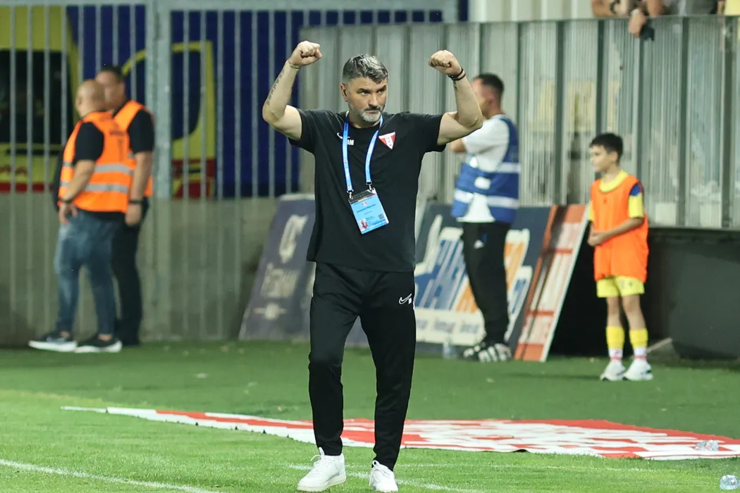 Adrian Mihalcea dupa victoria obtinuta in meciul de fotbal dintre FC Petrolul Ploiesti si UTA Arad, contand pentru Superliga Superbet, desfasurat pe Stadionul Ilie Oana din Ploiesti, vineri 1 august 2025. © FOTO:Gheroghe Fluster/SPORT PICTURES