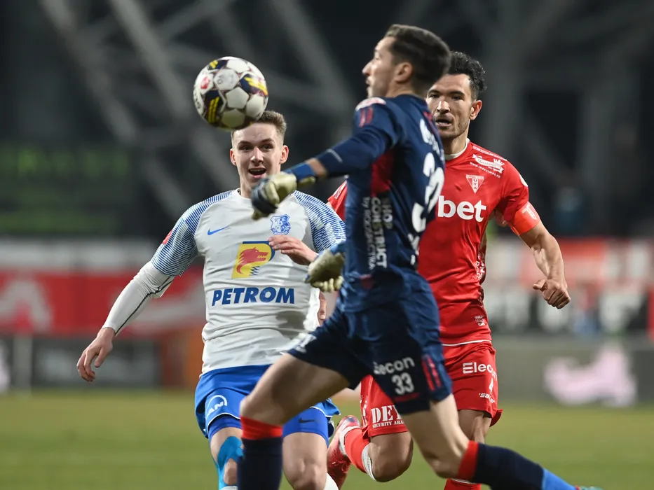 Louis Munteanu si Alexandru Constantin Benga in meciul de fotbal dintre UTA Arad si Farul Constanta, contand pentru Superliga Superbet, desfasurat pe Arena Francisc Neuman din Arad, vineri 24 februarie 2023. © FOTO:Razvan Pasarica/SPORT PICTURES
