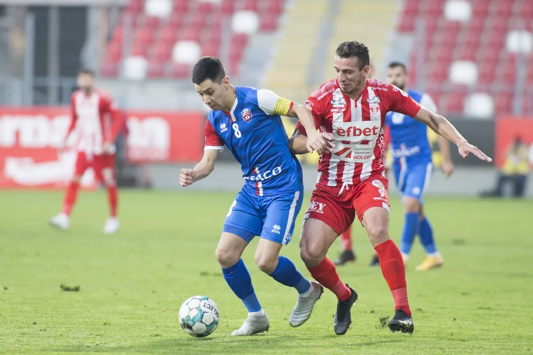 Jonathan Emanuel Rodriguez si Roger Junio Rodrigues Figueira in meciul de fotbal dintre UTA Arad si FC Botosani, contand pentru Liga 1 Casa Pariurilor, desfasurat fara spectatori pe Stadionul Francisc Neuman din Arad, luni 22 februarie 2021. © FOTO:Cornel Putan/SPORT PICTURES