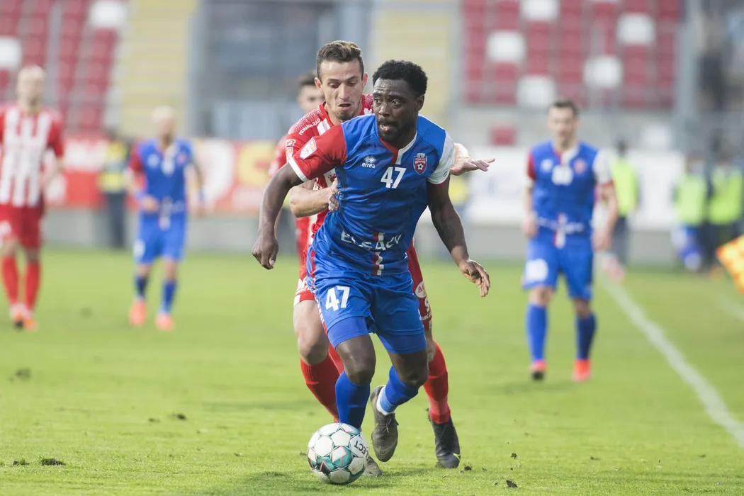 Roger Junio Rodrigues Figueira si Christopher Braun in meciul de fotbal dintre UTA Arad si FC Botosani, contand pentru Liga 1 Casa Pariurilor, desfasurat fara spectatori pe Stadionul Francisc Neuman din Arad, luni 22 februarie 2021. © FOTO:Cornel Putan/SPORT PICTURES
