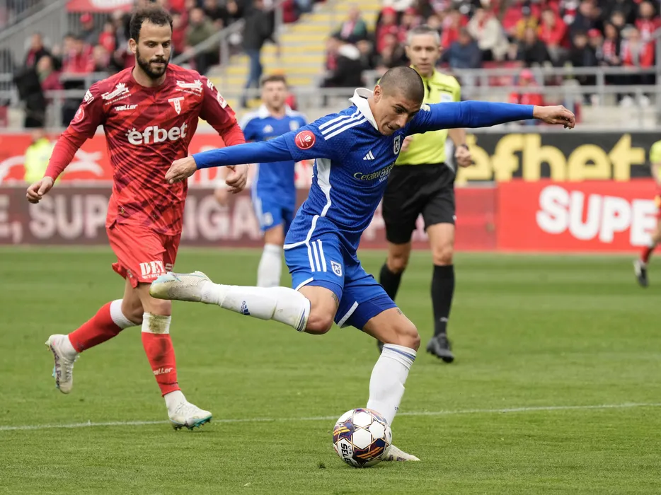 Juan Francisco Bauza și Joao Pedro Almeida Machado în meciul de fotbal dintre UTA Arad si FCU 1948 Craiova, contând pentru Superliga Superbet, desfășurat pe Arena Francisc Neuman din Arad, sâmbătă 2 martie 2024. © FOTO: Alexandra FECHETE/SPORT PICTURES