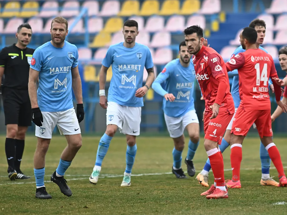 Adam Nemec si Alexandru Constantin Benga în meciul de fotbal dintre FC Voluntari si UTA Arad, contând pentru Superliga Superbet, desfășurat pe Stadionul Anghel Iordanescu din Voluntari, sambata 17 februarie 2024. © FOTO: Răzvan PĂSĂRICĂ/SPORT PICTURES
