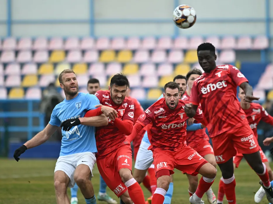 Adam Nemec, Alexandru Constantin Benga, Alexandru Tudorie si Eric Johana Omondi în meciul de fotbal dintre FC Voluntari si UTA Arad, contând pentru Superliga Superbet, desfășurat pe Stadionul Anghel Iordanescu din Voluntari, sambata 17 februarie 2024. © FOTO: Răzvan PĂSĂRICĂ/SPORT PICTURES