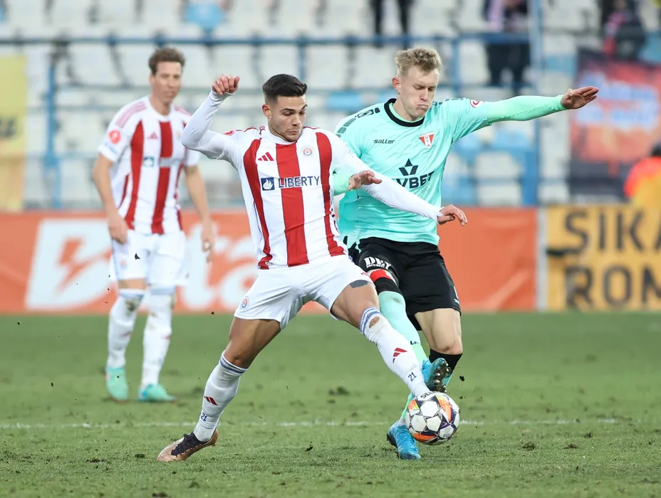 Samuel Teles Pereira Nunes Da Silva și Denis Lucian Hrezdac în meciul de fotbal dintre SC Oțelul Galați si UTA Arad, contând pentru Superliga Superbet, desfășurat pe Stadionul Oțelul din Galați, sâmbătă 14 decembrie 2024. © FOTO: Sorin PANĂ/SPORT PICTURES