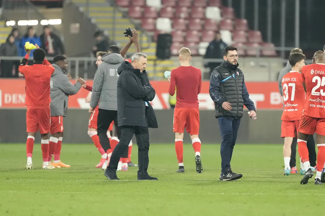 Fotbalistii aradeni saluta galeria dupa in meciul de fotbal dintre UTA Arad si Sepsi OSK Sfantu Gheorghe, contand pentru Superliga Superbet, desfasurat pe Arena Francisc Neuman din Arad, luni 24 februarie 2025. © FOTO: Alexandra Fechete/SPORT PICTURES