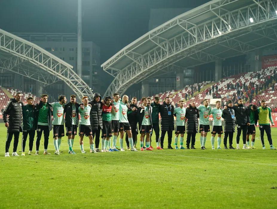 Fotbalistii covasneni saluta galeria dupa meciul de fotbal dintre UTA Arad si Sepsi OSK Sfantu Gheorghe, contand pentru Superliga Superbet, desfasurat pe Arena Francisc Neuman din Arad, luni 24 februarie 2025. © FOTO: Alexandra Fechete/SPORT PICTURES