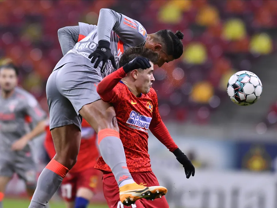 Erico Constantino Da Silva si Darius Dumitru Olaru in meciul de fotbal dintre FCSB si UTA Arad, contand pentru Liga 1 Casa Pariurilor, desfasurat fara spectatori pe Arena Nationala din Bucuresti, sambata 5 decembrie 2020. © FOTO:Razvan Pasarica/SPORT PICTURES