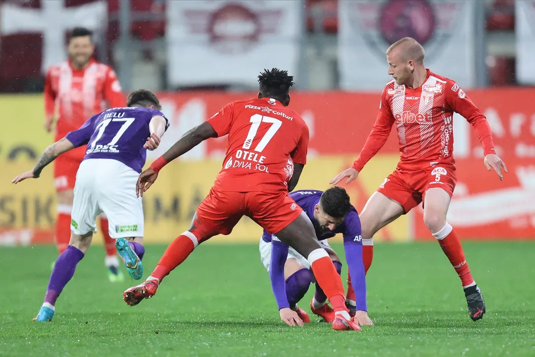 Meciul de fotbal dintre UTA Arad si Rapid Bucuresti contand pentru Liga 1 Play-Out Casa Pariurilor, desfasurat pe Stadionul Francisc Neuman din Arad, sambata 09 aprilie 2022. © FOTO:Ciprian Petcut/SPORT PICTURES