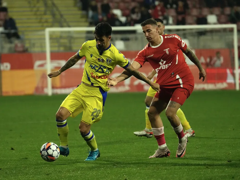 Sergiu Cătălin Hanca și Daniel Zsori în meciul de fotbal dintre UTA Arad si Petrolul Ploiești, contând pentru Superliga Superbet, desfășurat pe Arena Francisc Neuman din Arad, vineri 4 octombrie 2024. © FOTO: Alexandra FECHETE/SPORT PICTURES