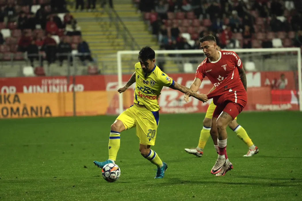 Sergiu Cătălin Hanca și Daniel Zsori în meciul de fotbal dintre UTA Arad si Petrolul Ploiești, contând pentru Superliga Superbet, desfășurat pe Arena Francisc Neuman din Arad, vineri 4 octombrie 2024. © FOTO: Alexandra FECHETE/SPORT PICTURES