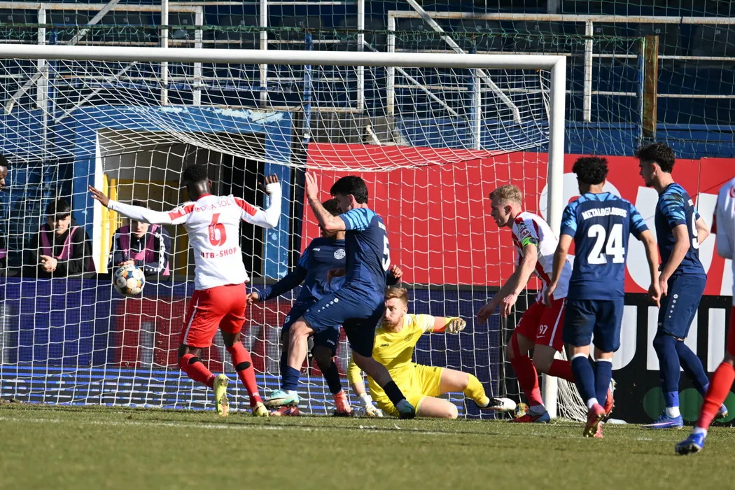 George Petrisor Gavrilas, Denis Lucian Hrezdac si Robert Gabriel Badescu in meciul de fotbal dintre Metaloglobus Bucuresti si UTA Arad, contand pentru Superliga Superbet, desfasurat pe Clinceni Arena din Clinceni, sambata 7 martie 2026. © FOTO:Razvan Pasarica/SPORT PICTURES