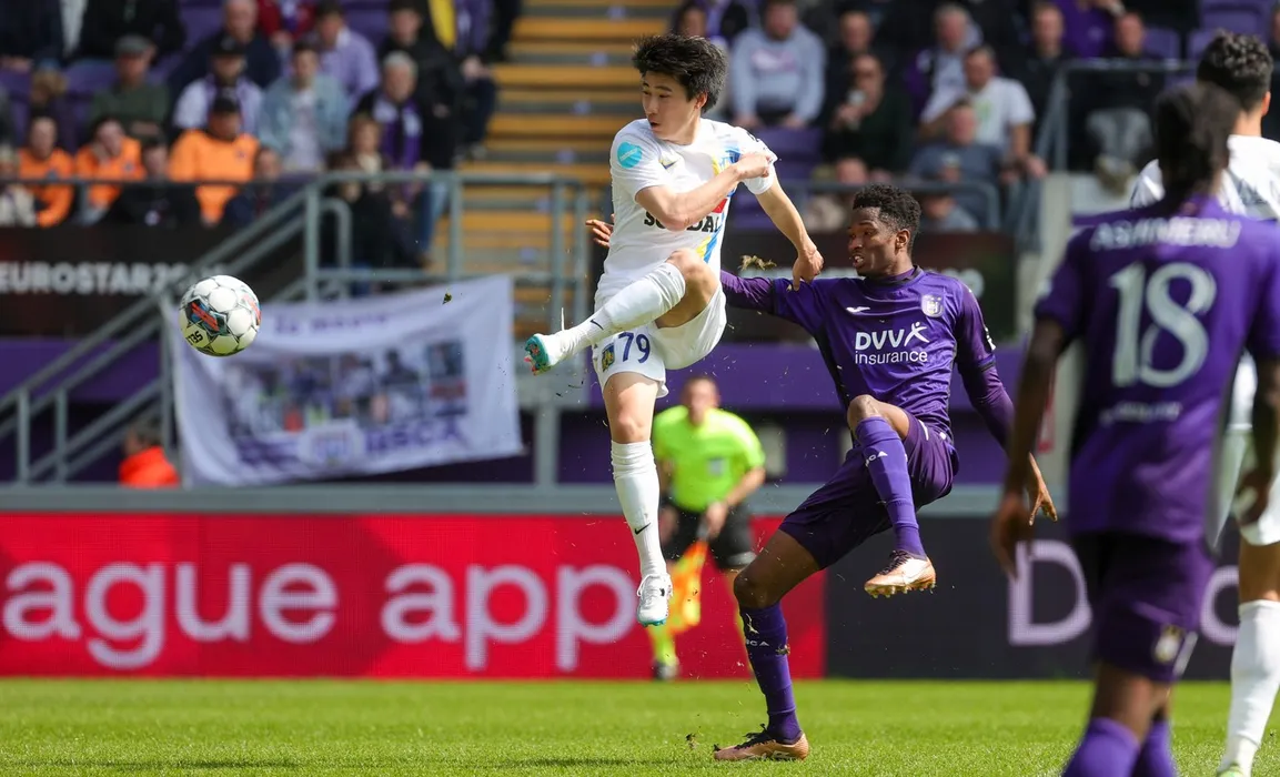 Westerlo's Kouya Mabea and Anderlecht's Moussa N'Diaye fight for the ball during a soccer match between RSC Anderlecht and KVC Westerlo, Sunday 09 April 2023 in Anderlecht, Brussels, on day 32 of the 2022-2023 'Jupiler Pro League' first division of the Belgian championship.,Image: 768206425, License: Rights-managed, Restrictions: , Model Release: no