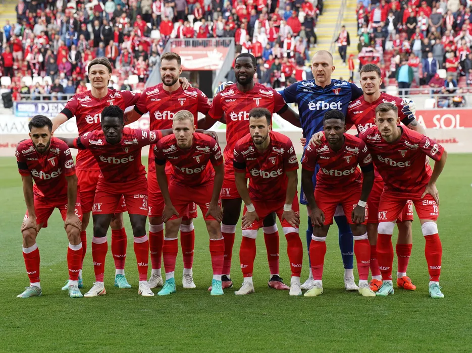 Fotbaliștii arădeni la o fotografie de grup realizată înaintea meciului de fotbal dintre UTA Arad si SC Oțelul Galați, contând pentru Superliga Superbet Play-Out, desfășurat pe Arena Francisc Neuman din Arad, joi 25 aprilie 2024. © FOTO: Alexandra FECHETE/SPORT PICTURES