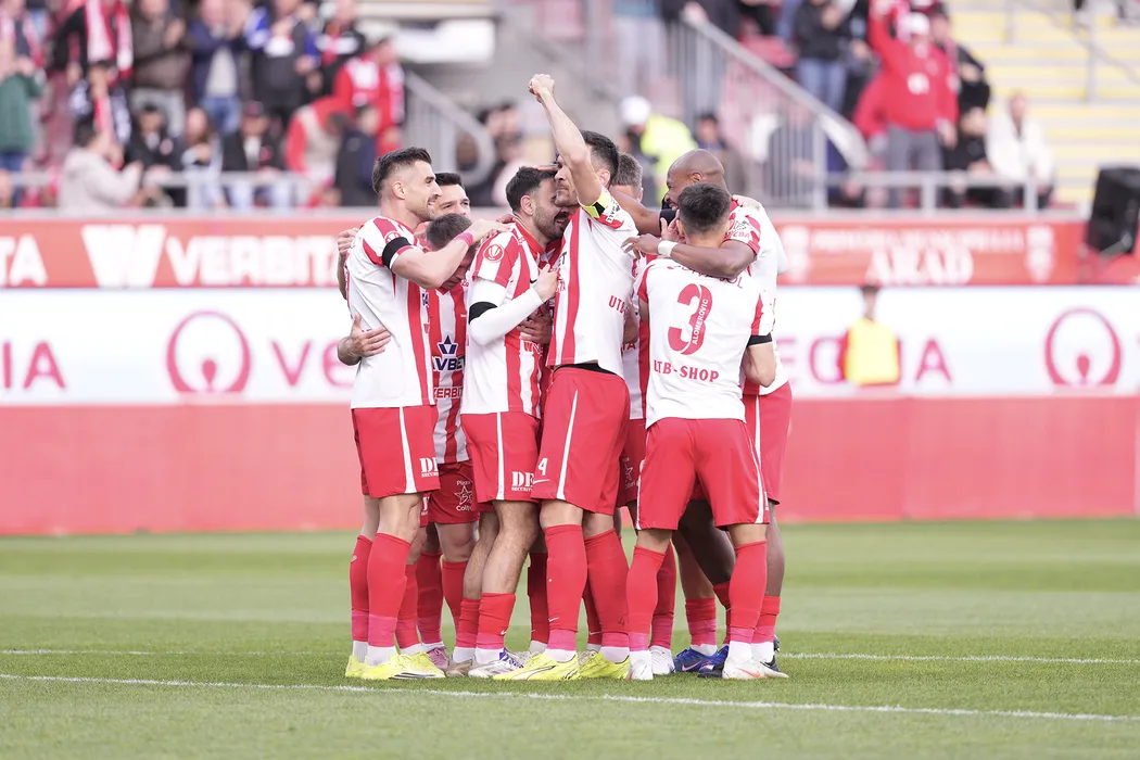 Fotbalistii aradeni se bucura dupa un gol marcat in meciul de fotbal dintre UTA Arad si FC Botosani, contand pentru Superliga Superbet Play-Out, desfasurat pe Arena Francisc Neuman din Arad, sambata 11 aprilie 2026. © FOTO:Alexandra Fechete/SPORT PICTURES