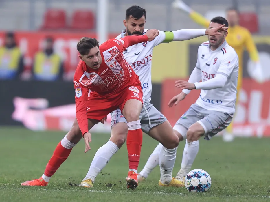 David Raul Miculescu si Enriko Papa in meciul de fotbal dintre UTA Arad si FC Botosani, contand pentru Liga 1 Casa Pariurilor, desfasurat pe Stadionul Francisc Neuman din Arad, sambata 11 decembrie 2021. © FOTO:Ciprian Petcut/SPORT PICTURES
