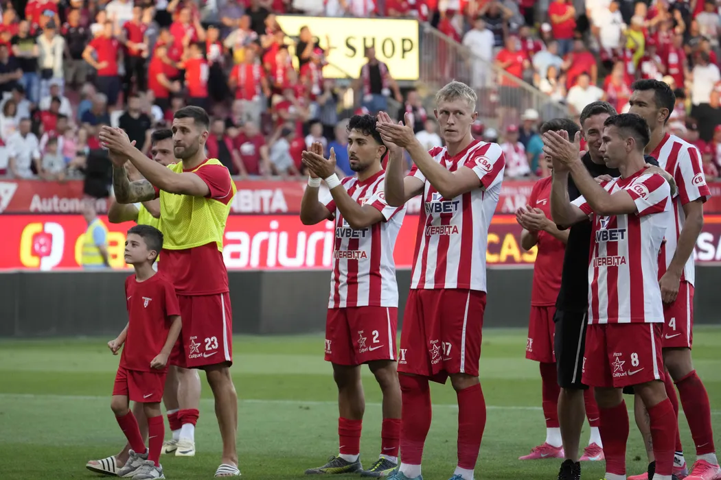 Fotbalistii aradeni saluta galeria dupa meciul de fotbal dintre UTA Arad si Universitatea Craiova, contand pentru Superliga Superbet, desfasurat pe Arena Francisc Neuman din Arad, sambata 12 iulie 2025. © FOTO:Alexandra Fechete/SPORT PICTURES