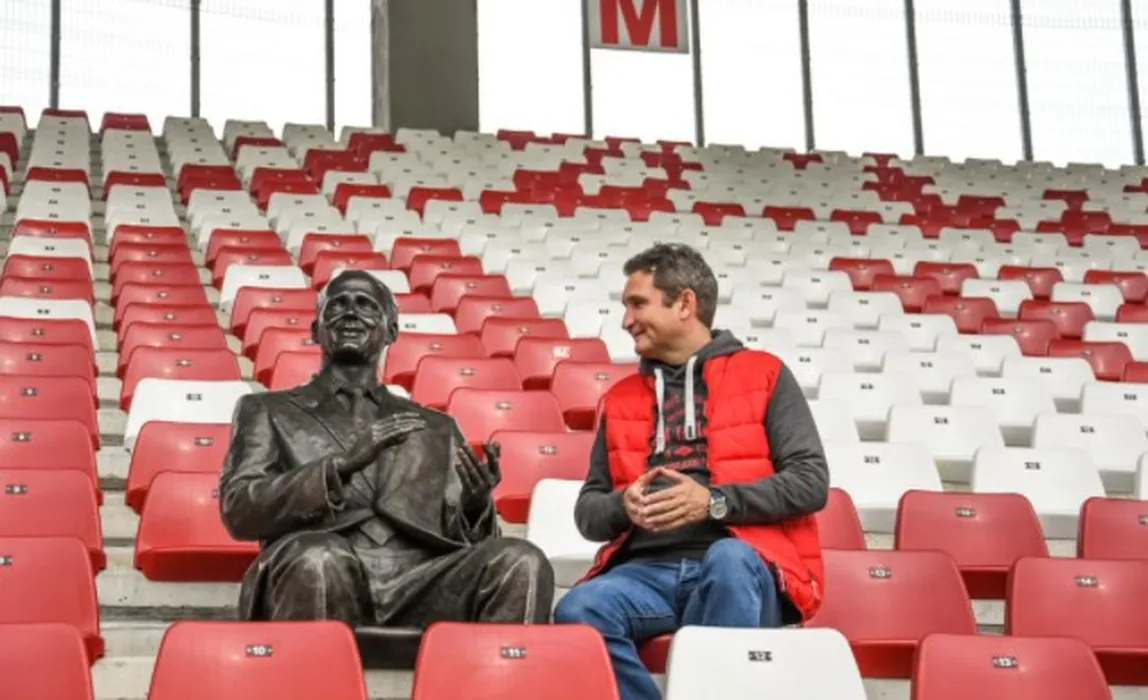 UTA va juca sub privirile creatorului ei: statuia de bronz a baronului Francisc Neuman a luat loc la tribuna a II-a arenei din Arad!