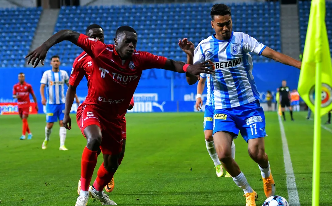 Joyskim Aurelien Dawa Tchakonte si Stefan Baiaram in meciul de fotbal dintre Universitatea Craiova si FC Botosani, contand pentru Barajul Europa Conference League, desfasurat pe Stadionul Ion Oblemenco din Craiova, vineri 27 mai 2022. © FOTO:Razvan Pasarica/SPORT PICTURES