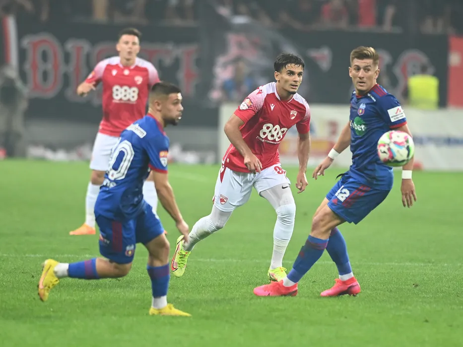 Alexandru Pop si Cristian Balgiu in meciul de fotbal dintre Dinamo Bucuresti si CSA Steaua Bucuresti, contand pentru Liga 2 Casa Pariurilor, desfasurat pe Arena Nationala din Bucuresti, vineri 9 septembrie 2022. © FOTO:Razvan Pasarica/SPORT PICTURES