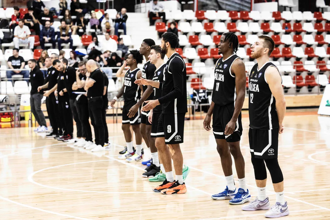 Baschetbaliștii vâlceni la startul meciului de baschet dintre CS Dinamo București și CS Vâlcea 1924, contând pentru Liga Națională de Baschet Masculin GETICA 95, desfășurat în Sala Dinamo din București, duminică 20 octombrie 2024. © FOTO: Mihai NEACȘU/SPORT PICTURES