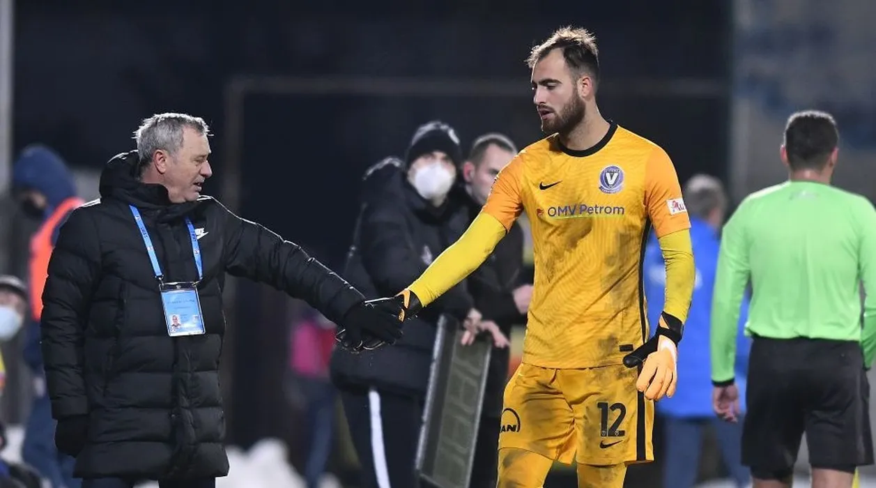Mircea Rednic il incurajeaza pe Valentin Alexandru Cojocaru eliminat in meciul de fotbal dintre Chindia Targoviste si Viitorul Constanta, contand pentru Liga 1 Casa Pariurilor, desfasurat pe Stadionul Marin Anastasovici din Giurgiu, sambata 12 decembrie 2020. © FOTO:Razvan Pasarica/SPORT PICTURES