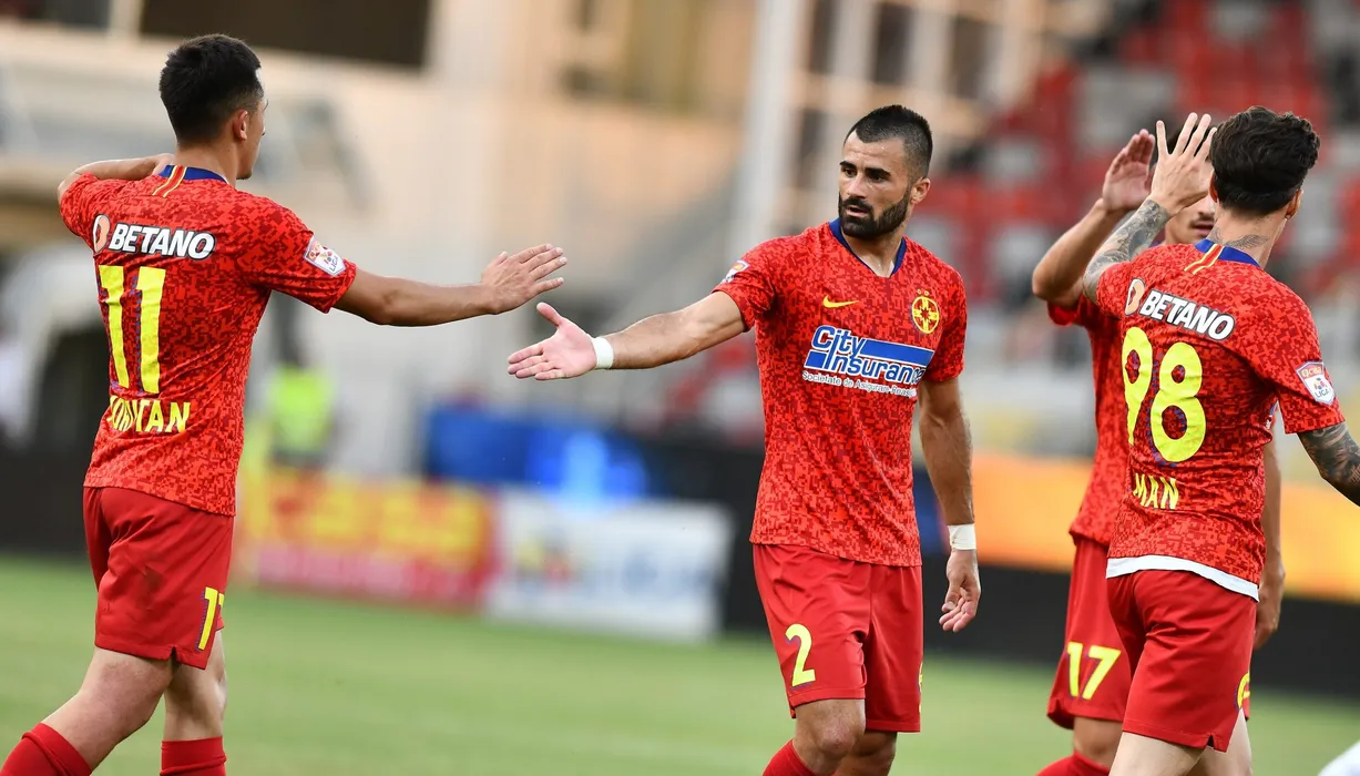 Valentin Cretu la o bucurie stelista in meciul de fotbal dintre Astra Giurgiu si FCSB, contand pentru play-off-ul Ligii 1 Casa Pariurilor, disputat fara spectatori pe Stadionul Marin Anastasovici din Giurgiu, luni 29 iunie 2020. © FOTO:Razvan Pasarica/SPORT PICTURES