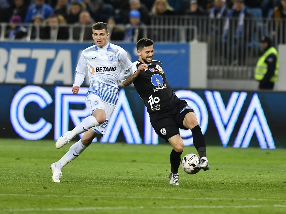 Mihai Valentin Mihaila si Roberto Romeo in meciul de fotbal dintre Universitatea Craiova si Gaz Metan Medias, contand pentru Liga 1 Casa Pariurilor, disputat pe Stadionul Ion Oblemenco din Craiova, duminica 1 martie 2020. © FOTO:Razvan Pasarica/SPORT PICTURES