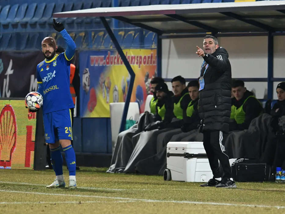 Dumitru Valentin Suciu reacționează alături de Daniel Marius Serbanica in meciul de fotbal dintre Unirea Slobozia si Sepsi OSK Sfantu Gheorghe, din cadrul Superligii Superbet, desfasurat pe Clinceni Arena din Clinceni, vineri 17 ianuarie 2025. © FOTO:Razvan Pasarica/SPORT PICTURES