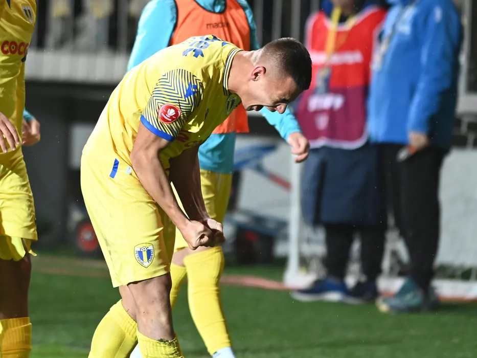 Valentin Constantin Ticu se bucura dupa un gol marcat in meciul de fotbal dintre Petrolul Ploiesti si FC Botosani, din cadrul Superligii Superbet, desfasurat pe Stadionul Ilie Oana din Ploiesti, vineri 24 noiembrie 2023. © FOTO:Razvan Pasarica/SPORT PICTURES