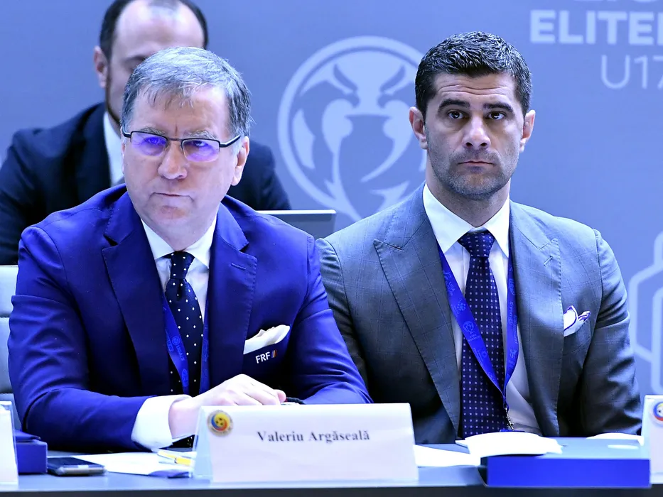 Valeriu Argaseala si Dani Coman in cadrul Adunarii Generale a FRF, desfasurata in Sala Nicolae Dobrin de la sediul Federtiei Romane de Fotbal din Bucuresti, mircuri 18 aprilie 2018. © FOTO Razvan Pasarica/SPORT PICTURES
