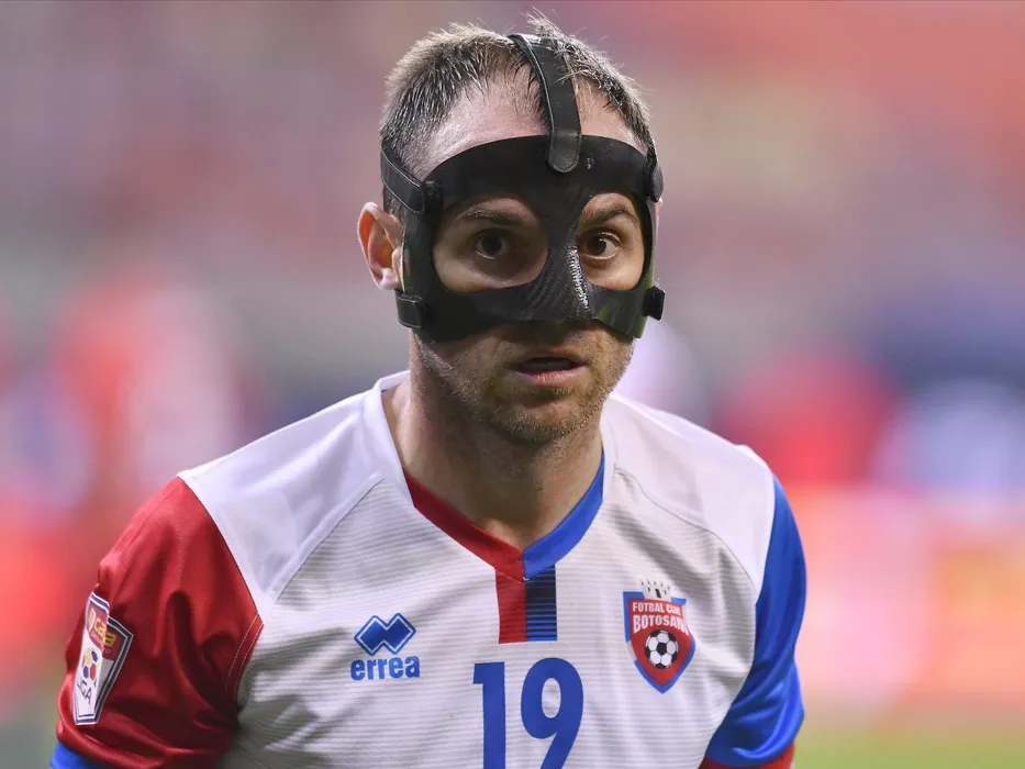 Andrei Alexandru Patache cu o masca de protectie pe fata in meciul de fotbal dintre FCSB si FC Botosani, contand pentru Liga 1 Casa Pariurilor, desfasurat fara spectatori pe Arena Nationala din Bucuresti, sambata 7 noiembrie 2020. © FOTO:Razvan Pasarica/SPORT PICTURES