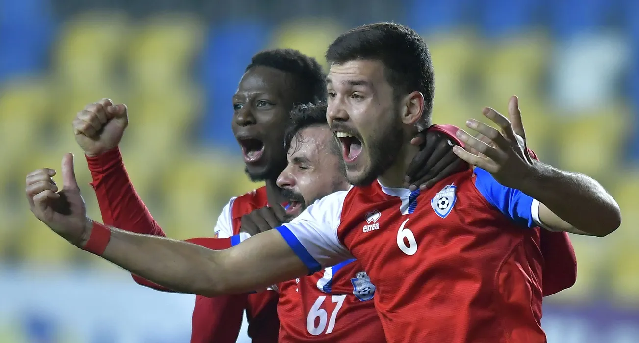 Andrei Chindris se bucura dupa un gol marcat alaturi de Hamidou Keyta si Enriko Papa in meciul de fotbal dintre Chindia Targoviste si FC Botosani, contand pentru Liga 1 Casa Pariurilor, desfasurat fara spectatori pe Stadionul Ilie Oana din Ploiesti, joi 4 februarie 2021. © FOTO:Razvan Pasarica/SPORT PICTURES