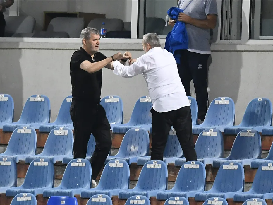 Valeriu Iftime se saluta cu Mihai Rotaru dupa meciul de fotbal dintre FC Botosani si Universitatea Craiova, contand pentru play-off-ul Ligii 1 Casa Pariurilor, disputat fara spectatori pe Stadionul Municipal din Botosani, duminica 19 iulie 2020. © FOTO:Razvan Pasarica/SPORT PICTURES