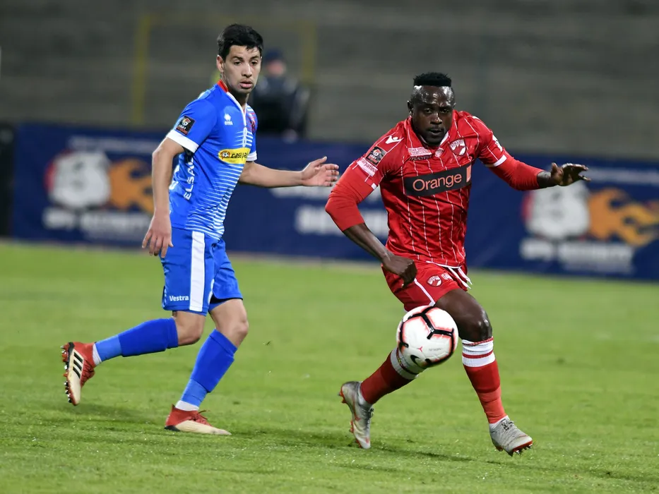 Jonathan Rodriguez si Simon Zenke in meciul de fotbal dintre Dinamo Bucuresti si FC Botosani, contand pentru playout-ul Ligii 1 Betano, desfasurat pe Stadionul Dinamo din Bucuresti, luni 22 aprilie 2019. © FOTO:Razvan Pasarica/SPORT PICTURES