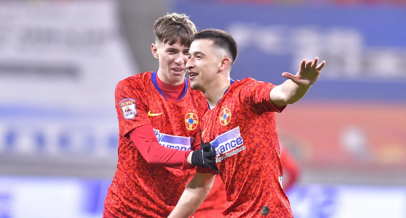 Olimpiu Vasile Morutan se bucura dupa un gol marcat alaturi de Octavian George Popescu in meciul de fotbal dintre FCSB si CFR Cluj, contand pentru Liga 1 Casa Pariurilor, desfasurat fara spectatori pe Arena Nationala din Bucuresti, vineri 19 martie 2021. © FOTO:Razvan Pasarica/SPORT PICTURES