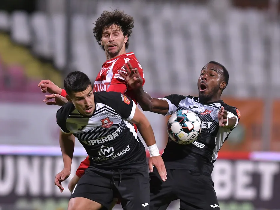 David Lastras Mayoral, Diego Fabbrini si Romario Santos Pires in meciul de fotbal dintre Dinamo Bucuresti si FC Hermannstadt, contand pentru Play-out-ul Ligii 1 Casa Pariurilor, desfasurat fara spectatori pe Stadionul Dinamo din Bucuresti, sambata 8 mai 2021. © FOTO:Razvan Pasarica/SPORT PICTURES
