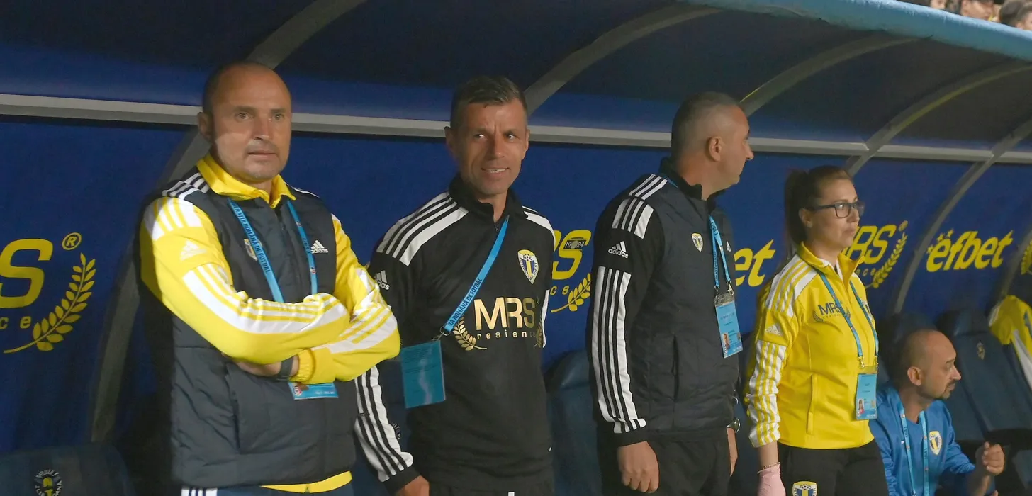 Banca petrolista cu Nicolae Constantin si Valentin Emanuel Badoi in meciul de fotbal dintre Petrolul Ploiesti si FCSB, contand pentru Superliga Superbet, desfasurat pe Stadionul Ilie Oana din Ploiesti, duminica 9 octombrie 2022. © FOTO:Razvan Pasarica/SPORT PICTURES