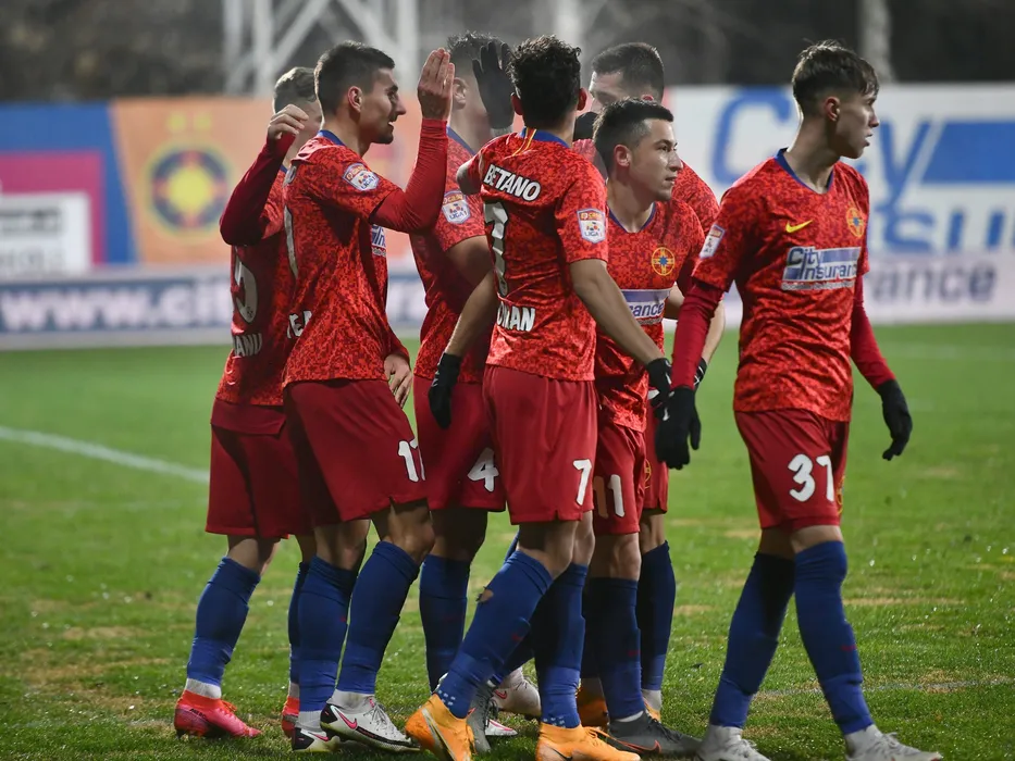 Bucurie a fotbalistilor stelisti dupa un gol marcat cu Iulian Lucian Cristea, Olimpiu Vasile Morutan si Octavian George Popescu in meciul de fotbal dintre FCSB si Sepsi OSK Sfantu Gheorghe, contand pentru Liga 1 Casa Pariurilor, desfasurat fara spectatori pe Terenul principal al Centrului National de Fotbal din Mogosoaia, luni 21 decembrie 2020. © FOTO:Razvan Pasarica/SPORT PICTURES