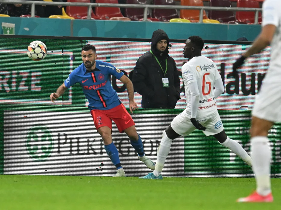 Valentin Cretu si Kalifa Kujabi in meciul de fotbal dintre FCSB si FC Hermannstadt, din cadrul Superligii Superbet, desfasurat pe Arena Nationala din Bucuresti, vineri 17 ianuarie 2025. © FOTO:Razvan Pasarica/SPORT PICTURES