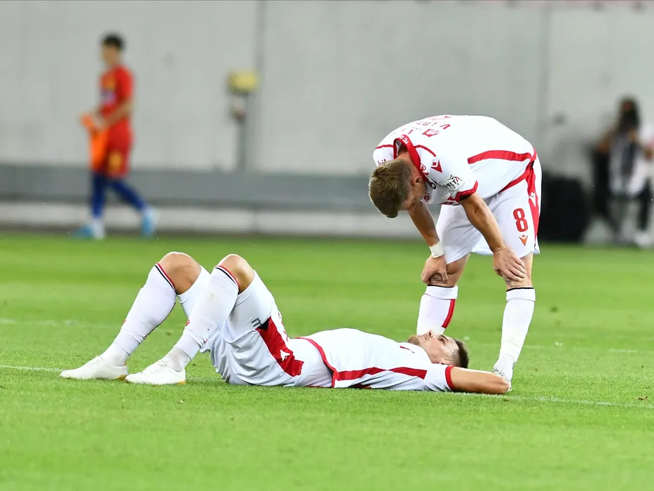 Ricardo Grigore si Valentin Marius Lazar suparati dupa meciul de fotbal dintre FCSB si Dinamo Bucuresti, contand pentru returul semifinalei Cupei Romaniei, disputat fara spectatori pe Arena Nationala din Bucuresti, miercuri 8 iulie 2020. © FOTO:Razvan Pasarica/SPORT PICTURES