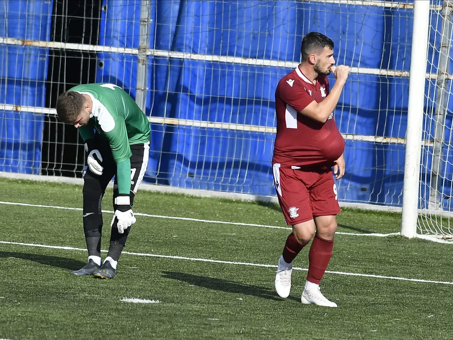 Adrian Balan se bucura dupa un gol marcat spre supararea lui Andrei Voican in meciul de fotbal dintre Progresul Spartac Bucuresti si Rapid Bucuresti, contand pentru Cupa Romaniei, disputat pe stadionul Progresul Spartac din Bucuresti, marti 20 octombrie 2020. © FOTO:Razvan Pasarica/SPORT PICTURES