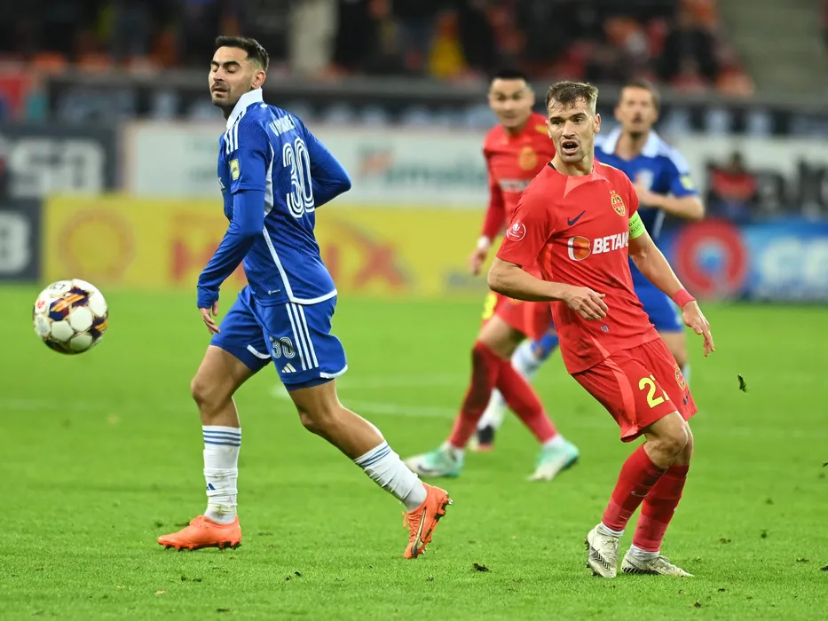 Andre P. Benjamin Van Durmen si Darius Dumitru Olaru in meciul de fotbal dintre FCSB si FC U Craiova, din cadrul Superligii Superbet, desfasurat pe Arena Nationala din Bucuresti, duminica 12 noiembrie 2023. © FOTO:Razvan Pasarica/SPORT PICTURES