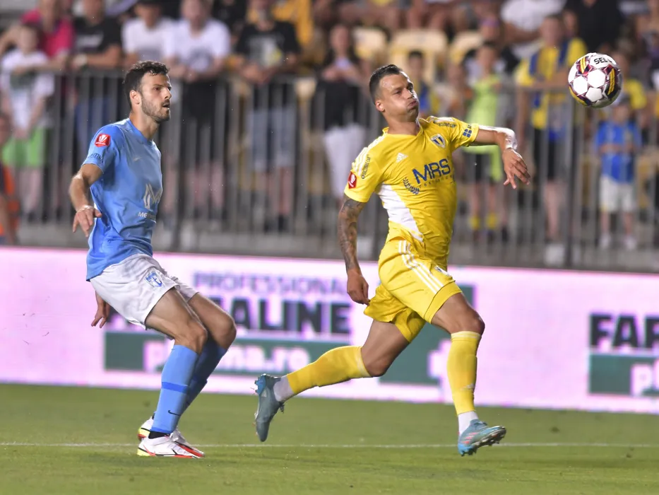 Patricio Martin Matricardi si Mirko Ivanovski in meciul de fotbal dintre Petrolul Ploiesti si FC Voluntari, contand pentru Superliga Superbet, desfasurat pe Stadionul Ilie Oana din Ploiesti, luni 18 iulie 2022. © FOTO:Razvan Pasarica/SPORT PICTURES
